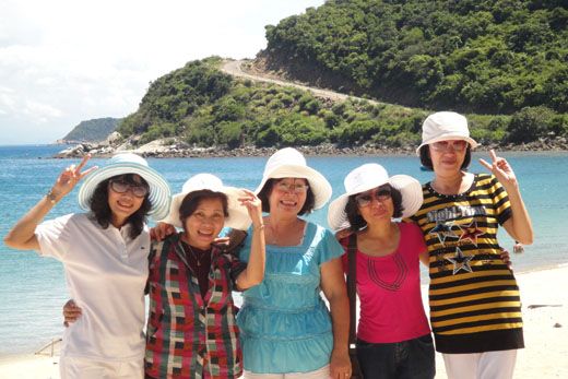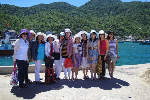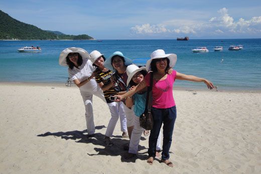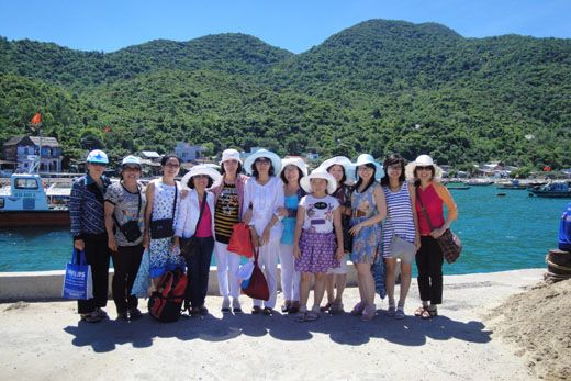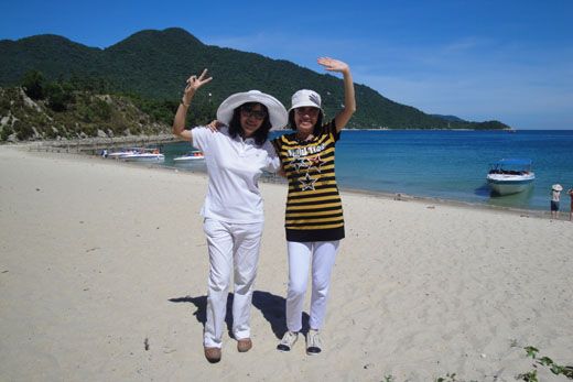 Nước biển trong xanh, mát rượi ... không cưỡng lại được nên cả đoàn cùng đứng lại chụp vài tấm ảnh lưu niệm mặc dù hướng dẫn viên thúc hối vào nhà khách để nghe thuyết minh về đảo.