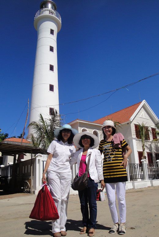 Chụp hình lưu niệm bên ngọn hải đăng trước khi tạm biệt Cù lao Chàm để ra về.