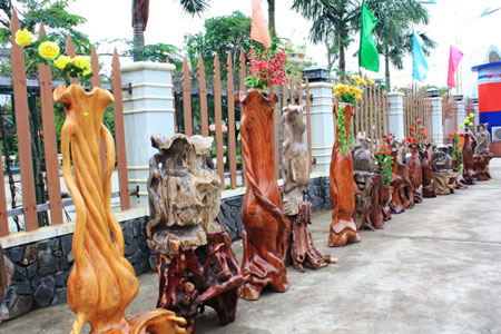 Có hơn 100 sản phẩm từ đá và gỗ được trưng bày tại triển lãm. Nhiều tác phẩm rất độc đáo thu hút đông đảo người xem như gỗ hóa thạch, những bức tượng bằng gỗ, những tác phẩm từ đá, bức tranh gỗ bằng gốc cây…