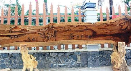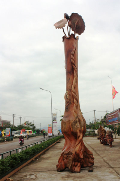 Tác phẩm độc bình được đặt tên “Núi Đá Bia” cao 5,60m là cây độc bình bằng gỗ cao nhất Việt Nam hiện nay
