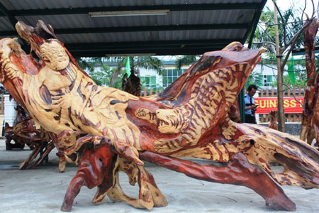 Những tác phẩm độc đáo từ gỗ và đá.